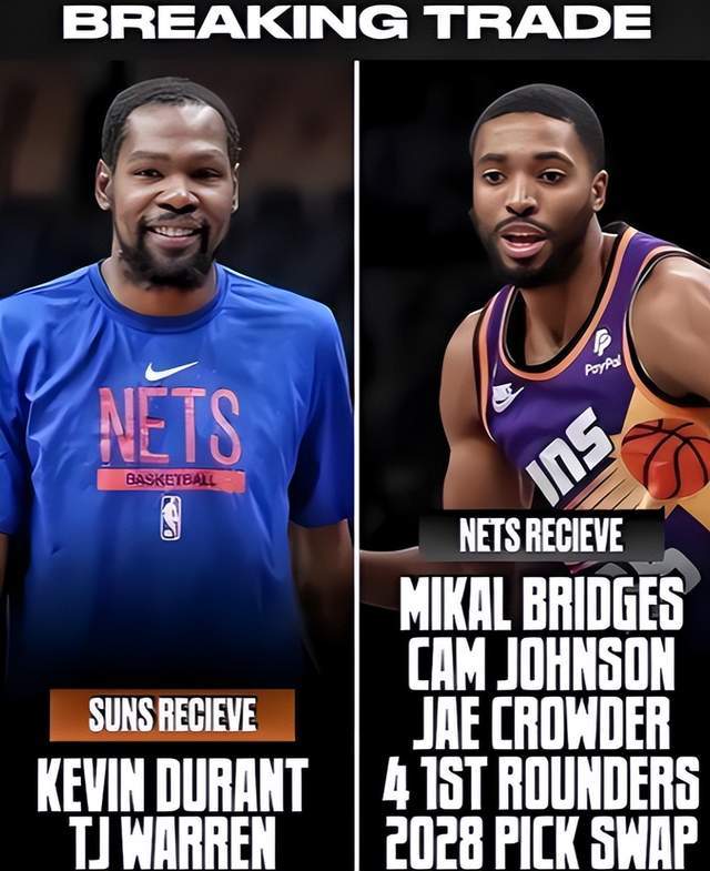 时间回到2023年交易截止日前,篮网送走杜兰特,换回了布里奇斯+卡梅伦·约翰逊+克劳德,附加4个无保护首轮和1个首轮互换。